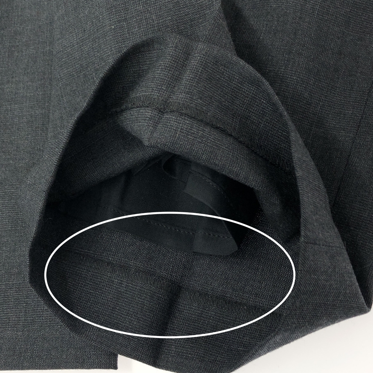 裾裏側のまつり縫いホツレあり - ※スレ傷や汚れがある場合はその一部分のみ撮影を行っております。 画像に写っていない箇所にも同じようなスレ傷や汚れがある場合がございます。 |
