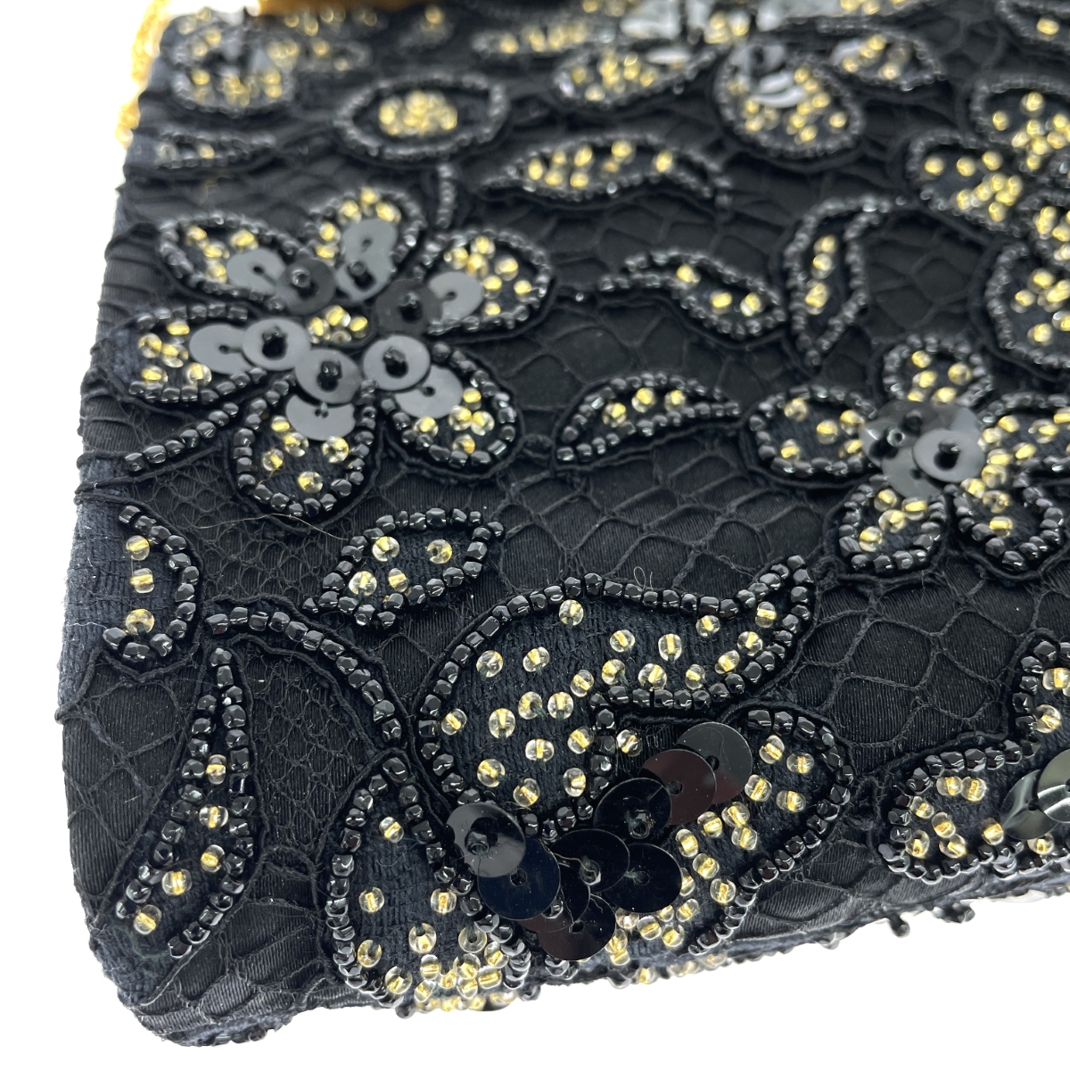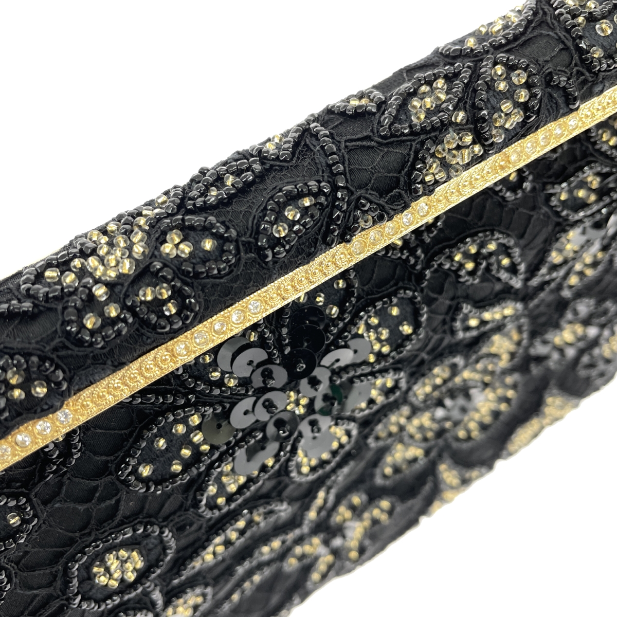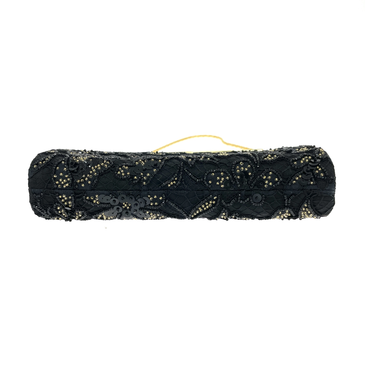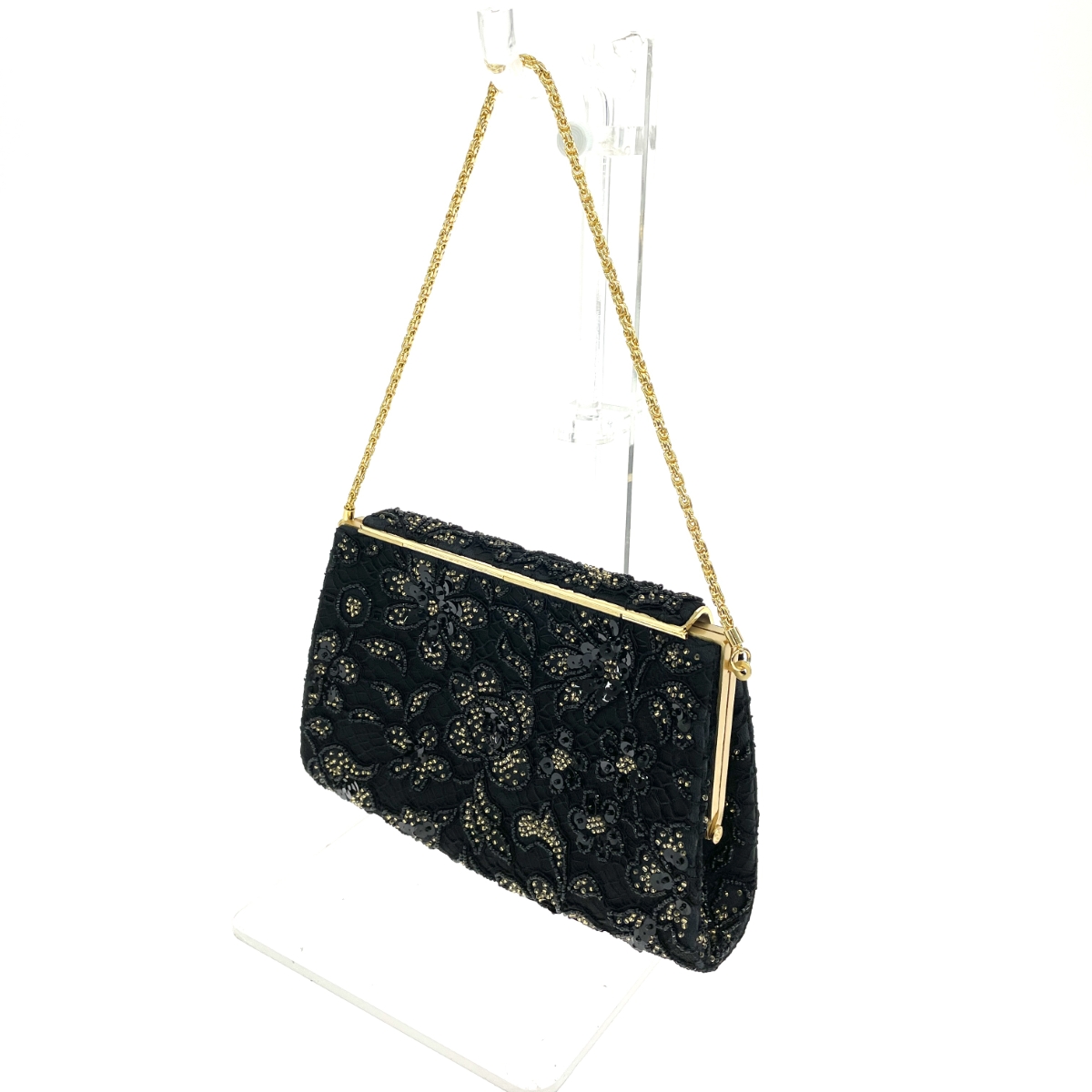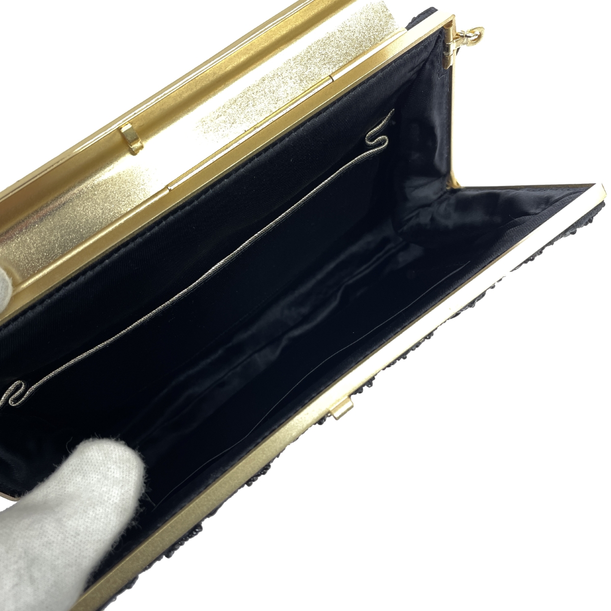 がま口チェーンクラッチバッグ 和装 花 ビーズ スパンコール サテン |