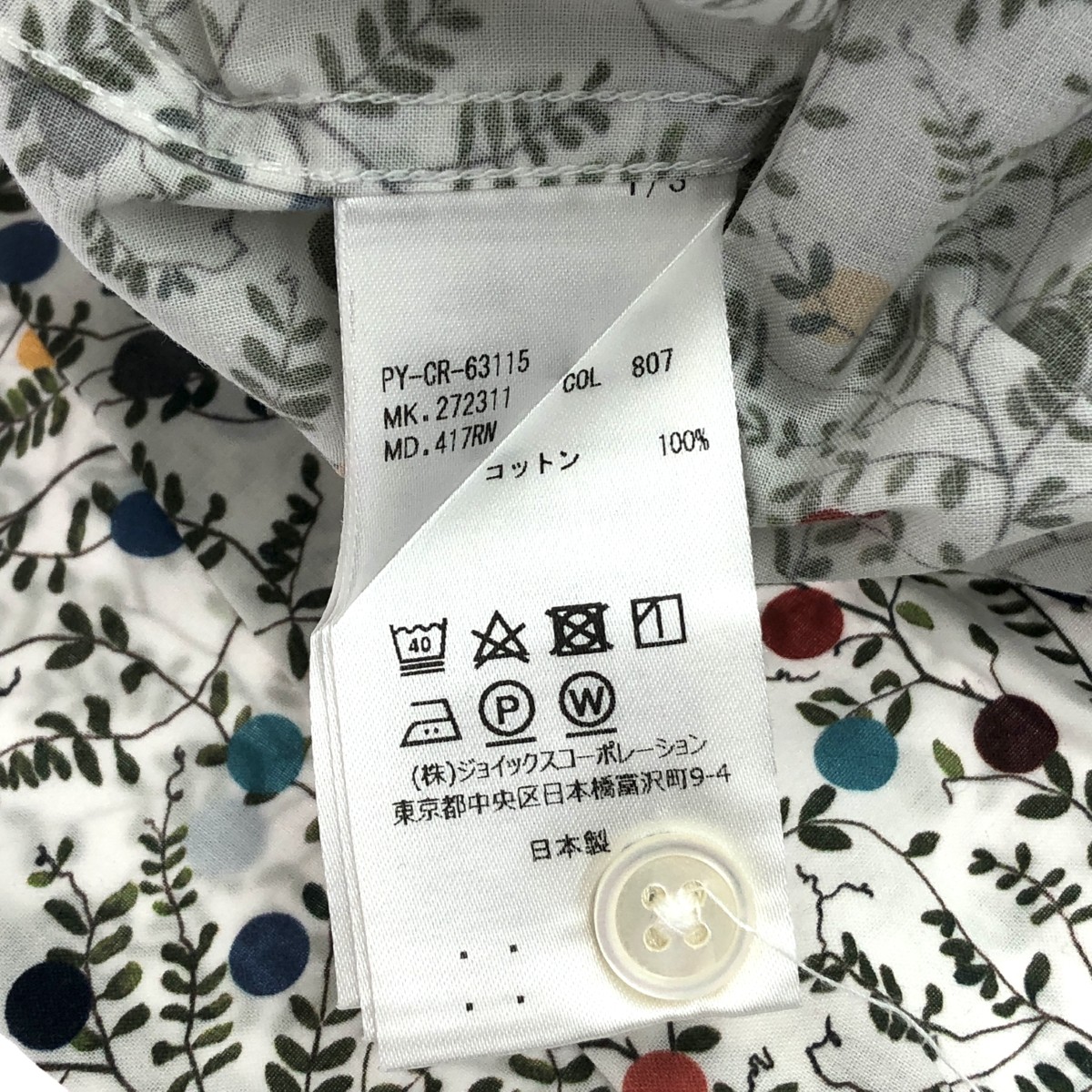 半袖シャツ 総柄/ボタンダウン ※素材は画像の素材タグをご確認ください。 画像にない場合は素材タグが無く素材不明となります。 |