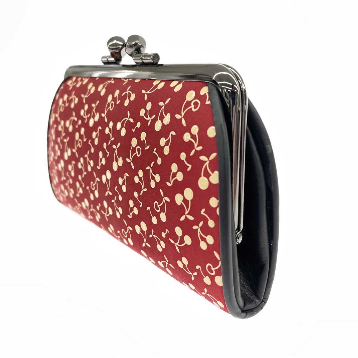 親子がま口小銭入れ 財布 1501 さくらんぼ/赤地鹿革白漆 |