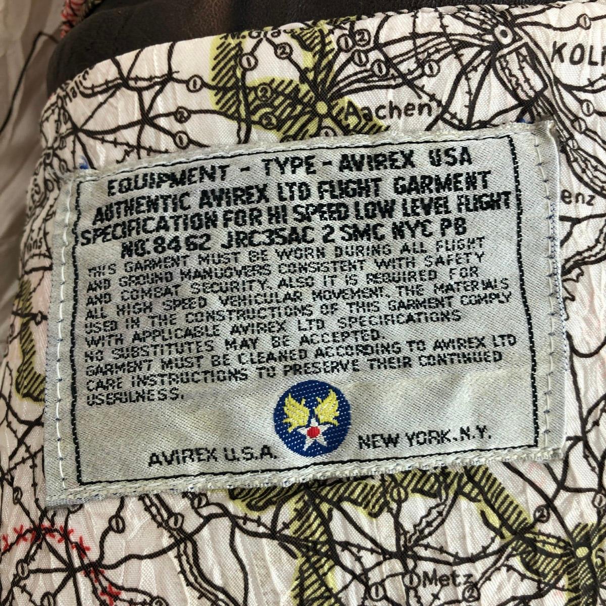 A-2フライトジャケット レザー/ワッペン ※素材は画像の素材タグをご確認ください。 画像にない場合は素材タグが無く素材不明となります。 |