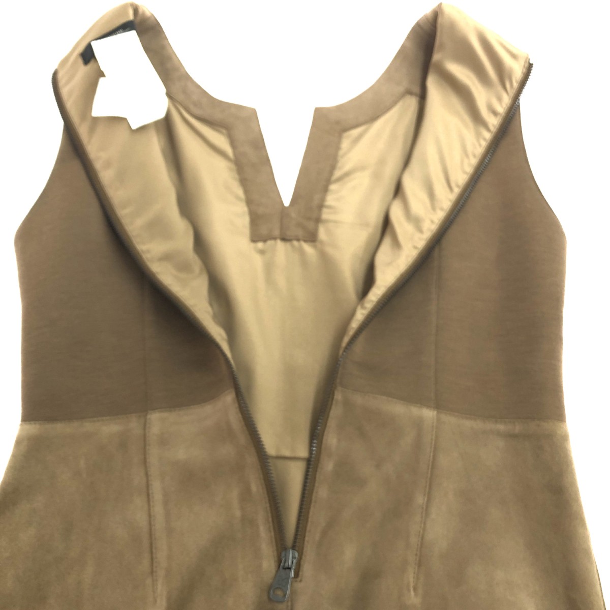 ノースリーブワンピ―ス フェイクスウェード ※素材は画像の素材タグをご確認ください。 画像にない場合は素材タグが無く素材不明となります。 |