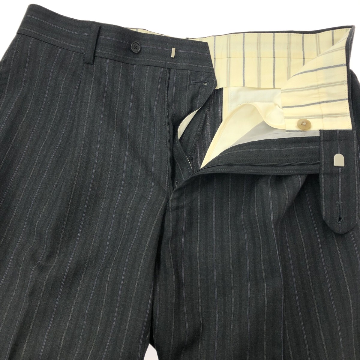 ストライプ2Bスーツ ジャケット&パンツ/背抜き ※素材は画像の素材タグをご確認ください。 画像にない場合は素材タグが無く素材不明となります。 |