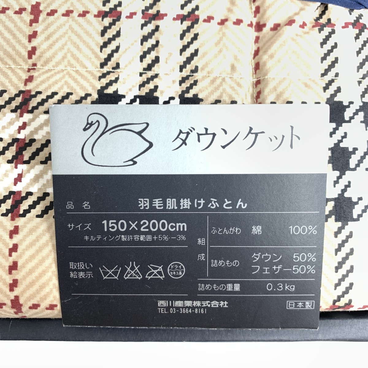 羽毛肌掛けふとん/ダウンケット ホースロゴ刺繍/ノバチェック 西川産業/ダウン×フェザー |