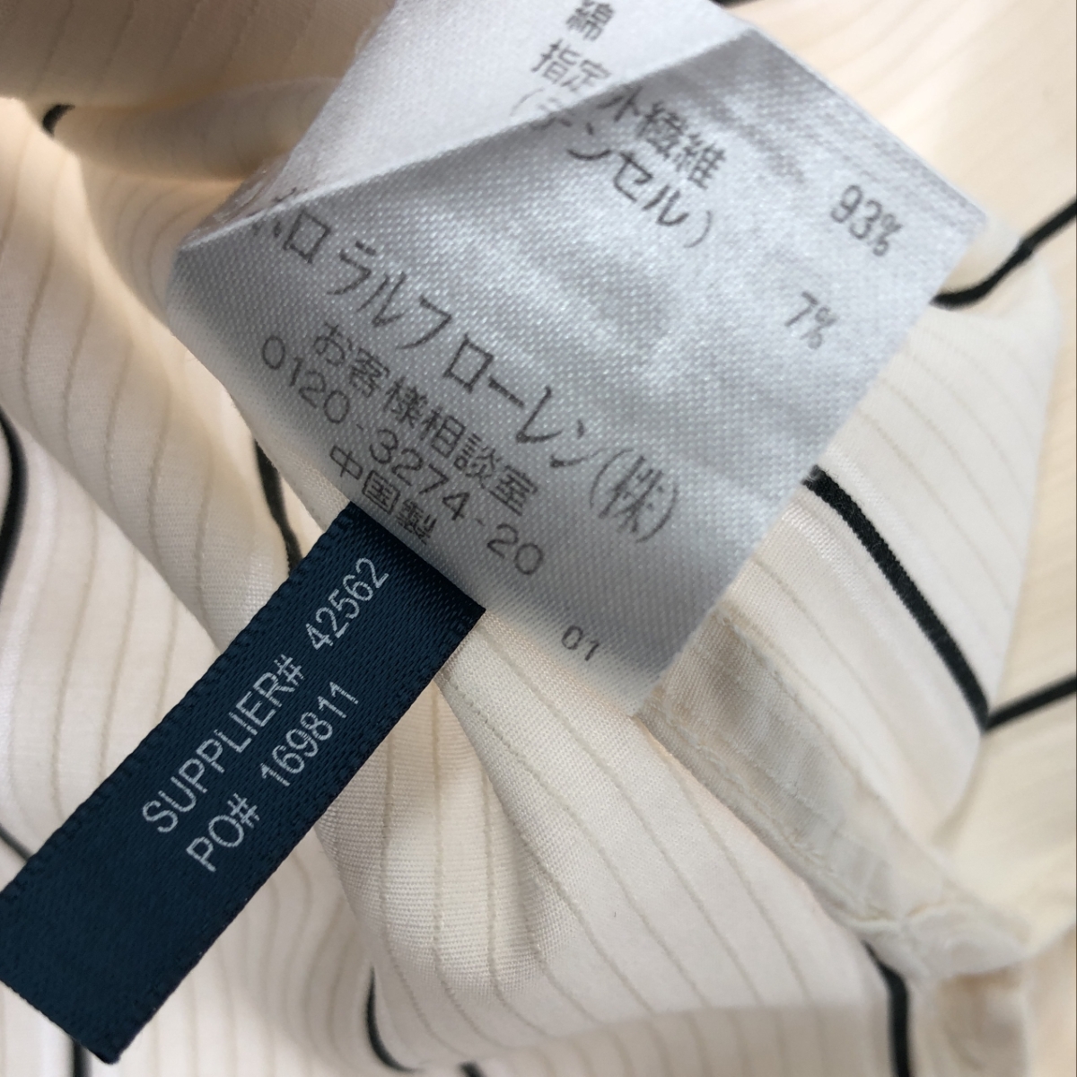 バンドカラーシャツ ストライプ ※素材は画像の素材タグをご確認ください。 画像にない場合は素材タグが無く素材不明となります。 |
