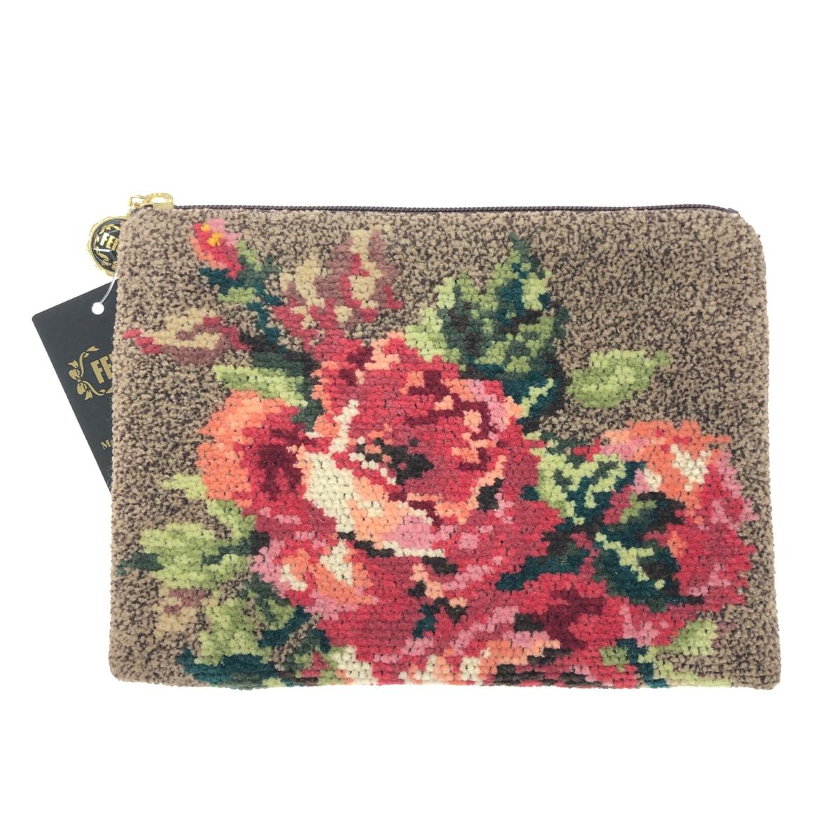 ポーチ シェニール織/花柄 ファスナー式 |