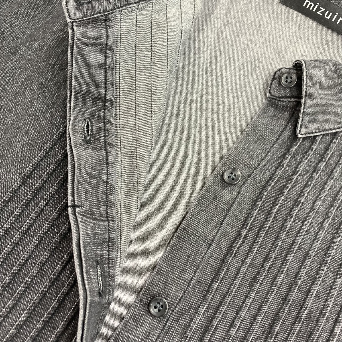 デニムピンタックショートシャツ mizuiro ind ※素材は画像の素材タグをご確認ください。 画像にない場合は素材タグが無く素材不明となります。 |