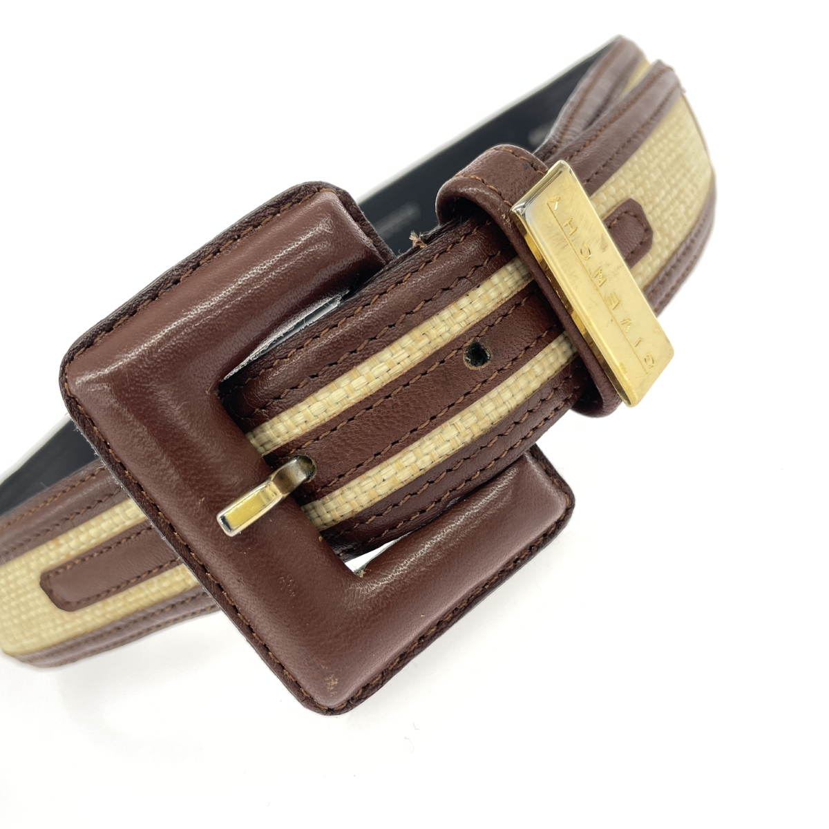 【ベルト】薄汚れ、ヨレ有り- 【バックル】金具くすみ有り ※スレ傷や汚れがある場合はその一部分のみ撮影を行っております。 画像に写っていない箇所にも同じようなスレ傷や汚れがある場合がございます。 |
