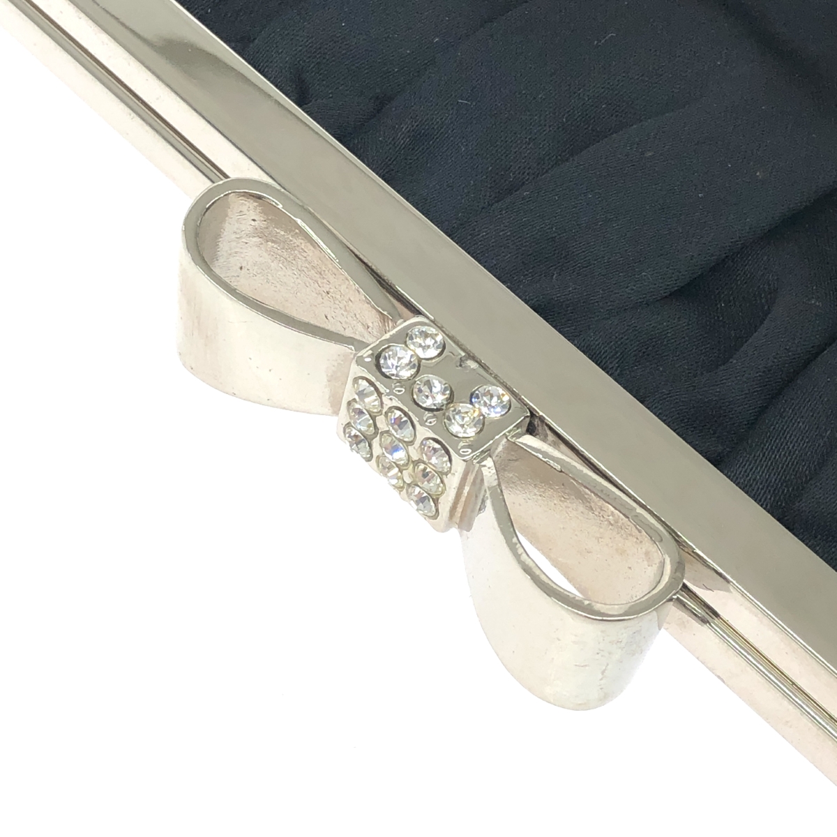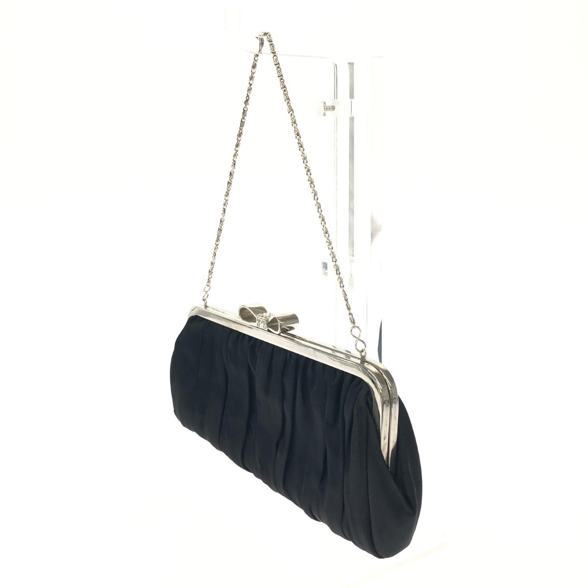 がま口チェーンクラッチバッグ リボン/ラインストーン/サテン |