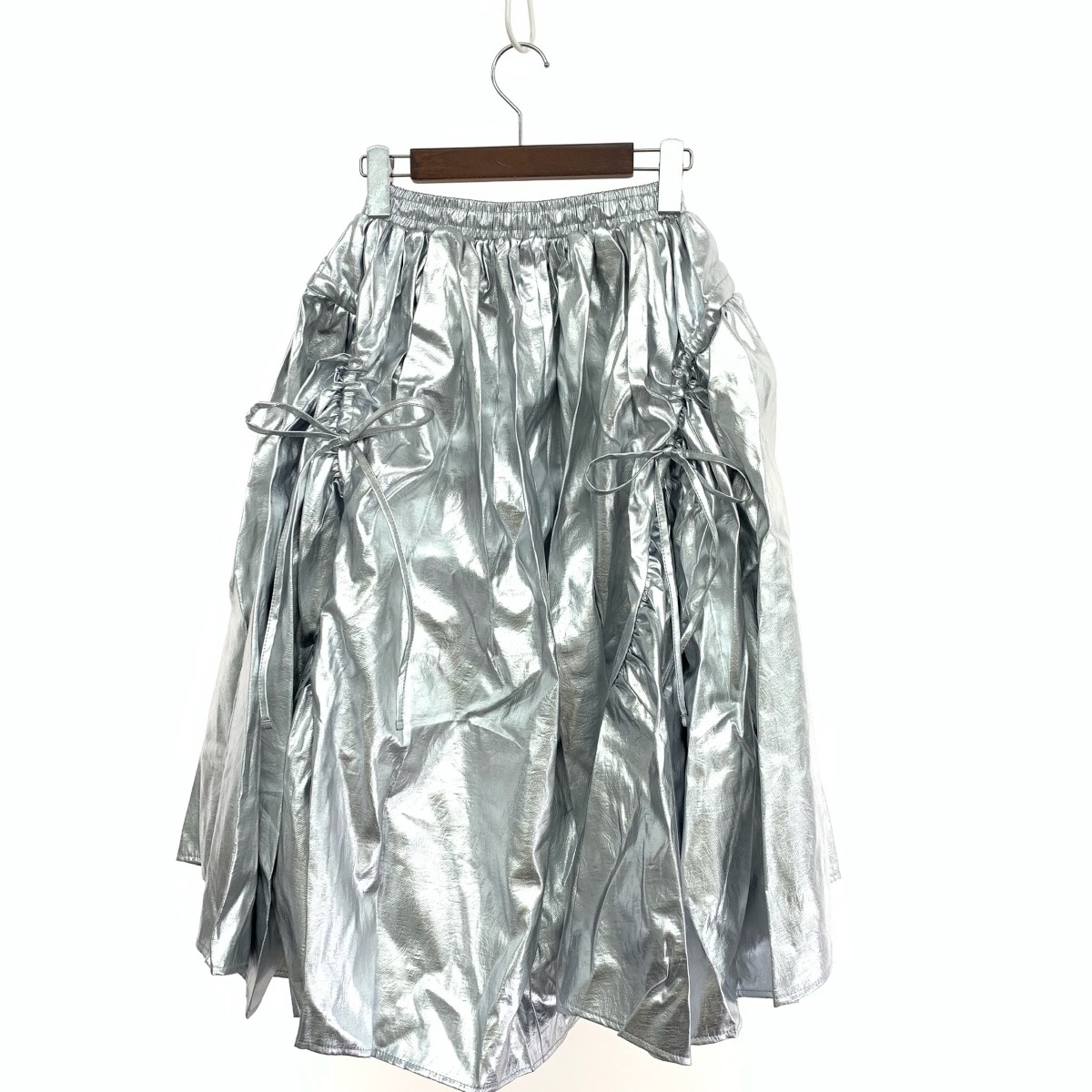 シルバーギャザーリボンスカート ※素材は画像の素材タグをご確認ください。 画像にない場合は素材タグが無く素材不明となります。 |