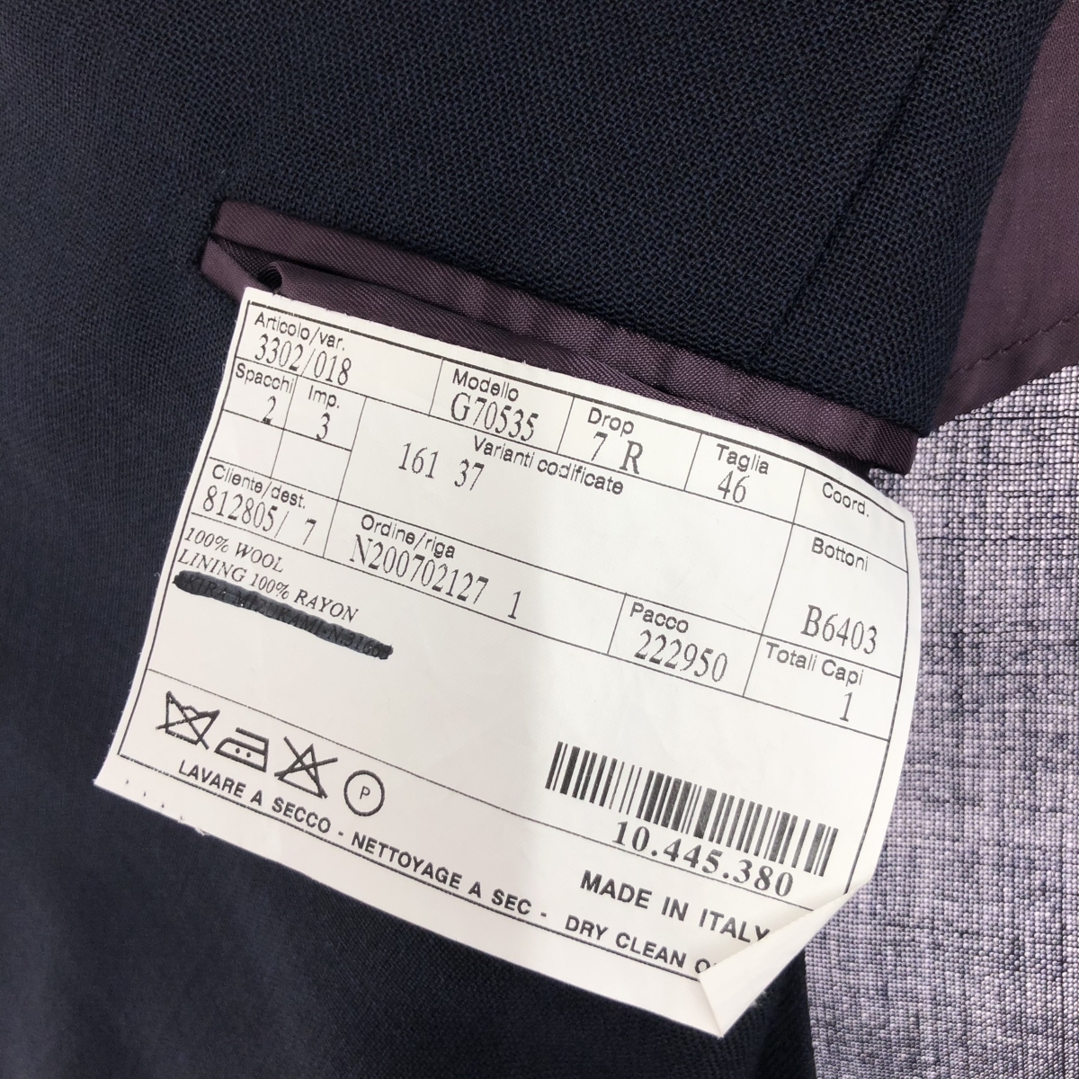 3Bジャケット G70535 銀釦 ※素材は画像の素材タグをご確認ください。 画像にない場合は素材タグが無く素材不明となります。 |