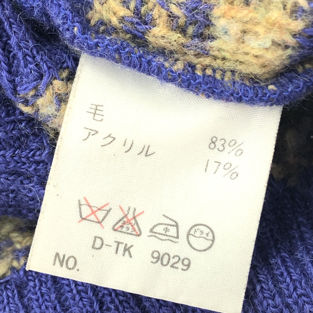 長袖ニット ウール/アクリル/総柄 ※素材は画像の素材タグをご確認ください。 画像にない場合は素材タグが無く素材不明となります。 |