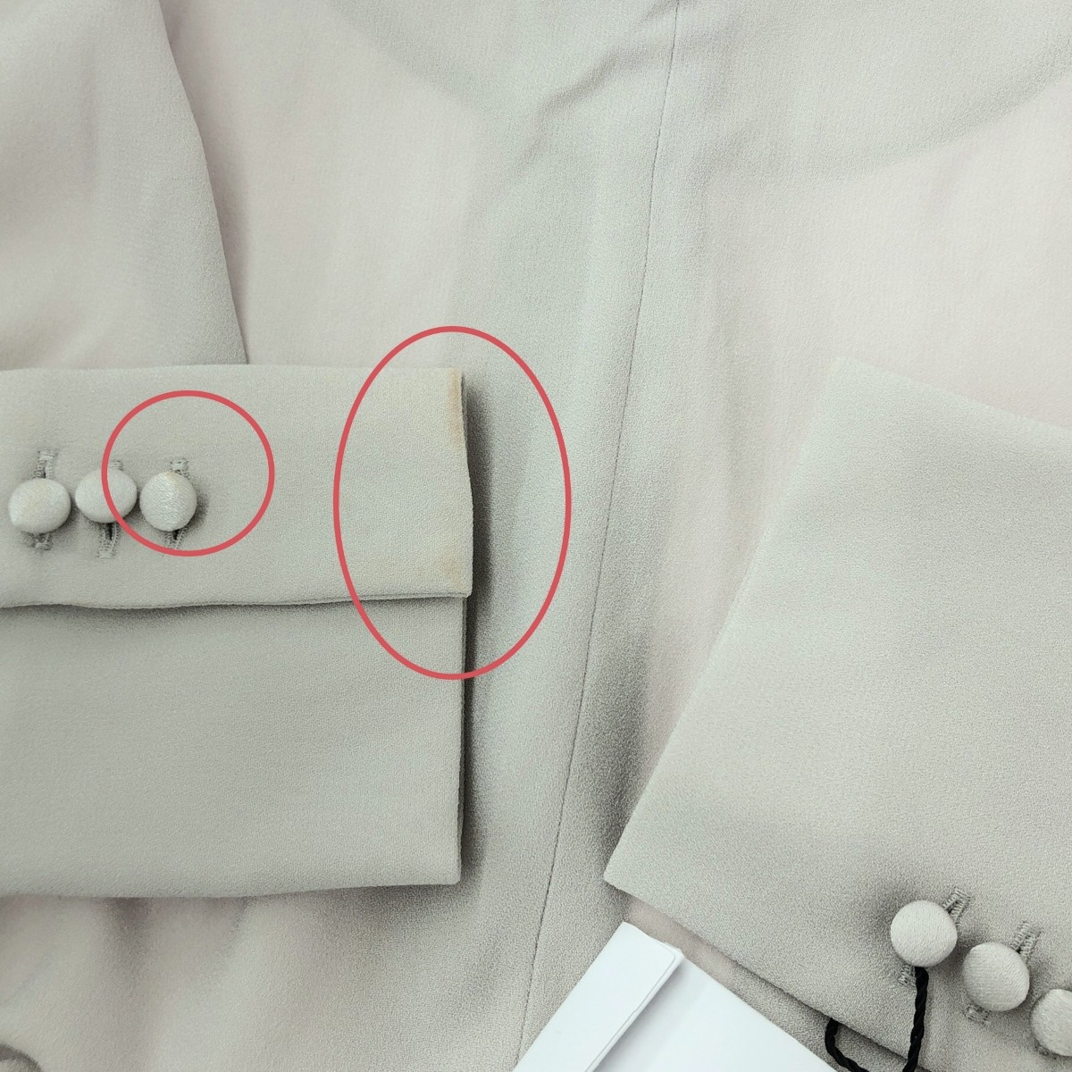 インナーキャミ付 袖口に汚れあり - ※スレ傷や汚れがある場合はその一部分のみ撮影を行っております。 画像に写っていない箇所にも同じようなスレ傷や汚れがある場合がございます。 |