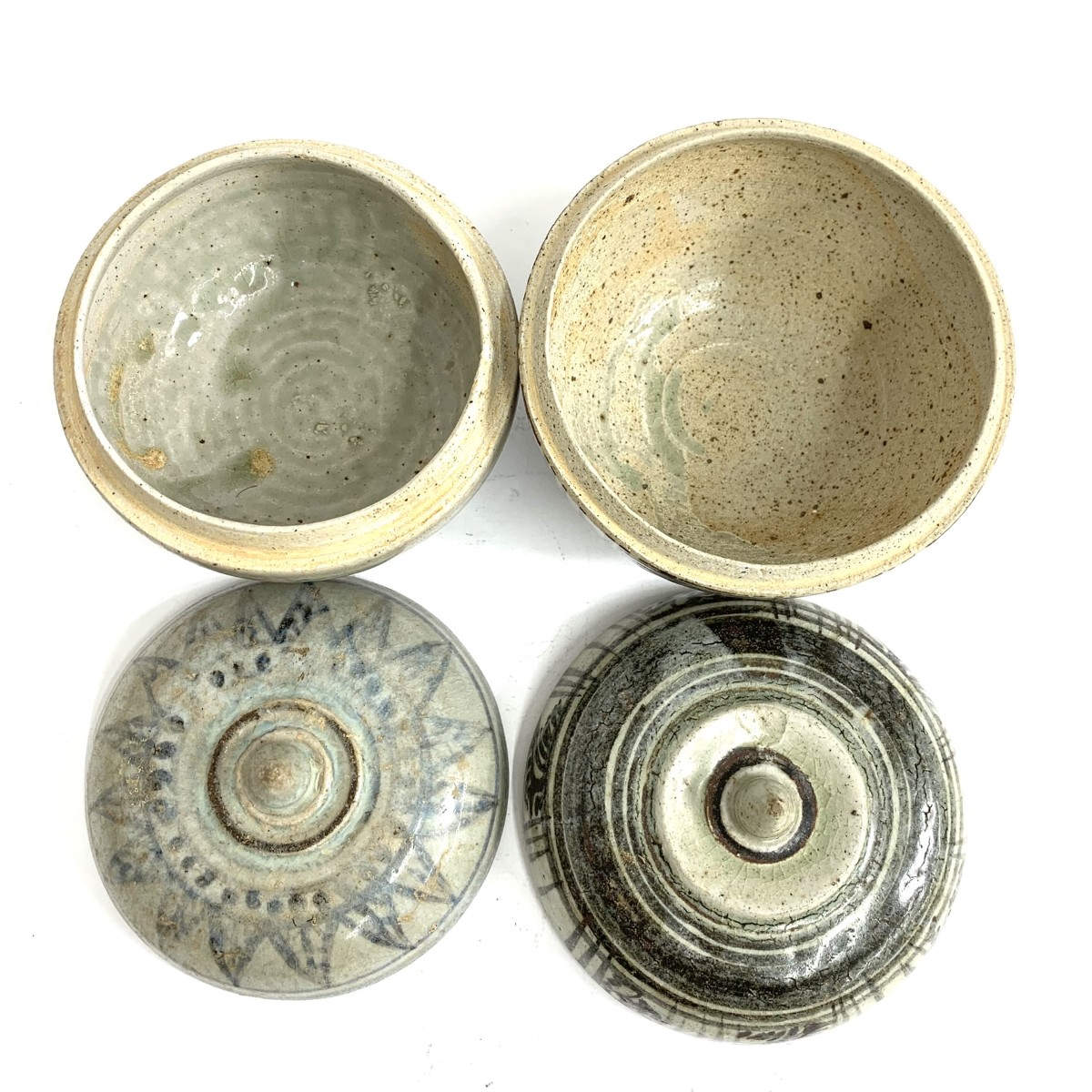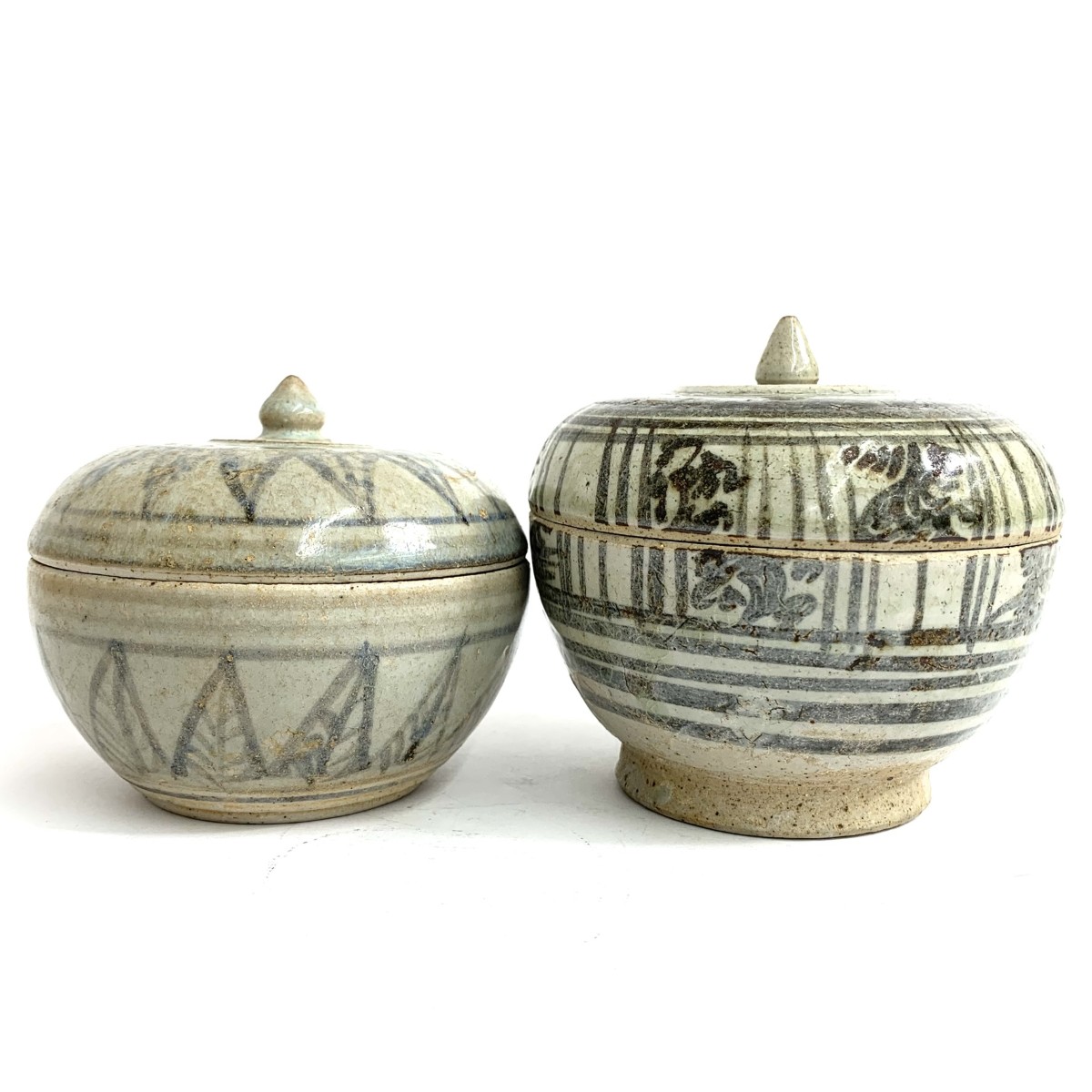 鉄絵宝珠合子 シーサッチャナライ旧窯/14~15世紀/2点揃 |
