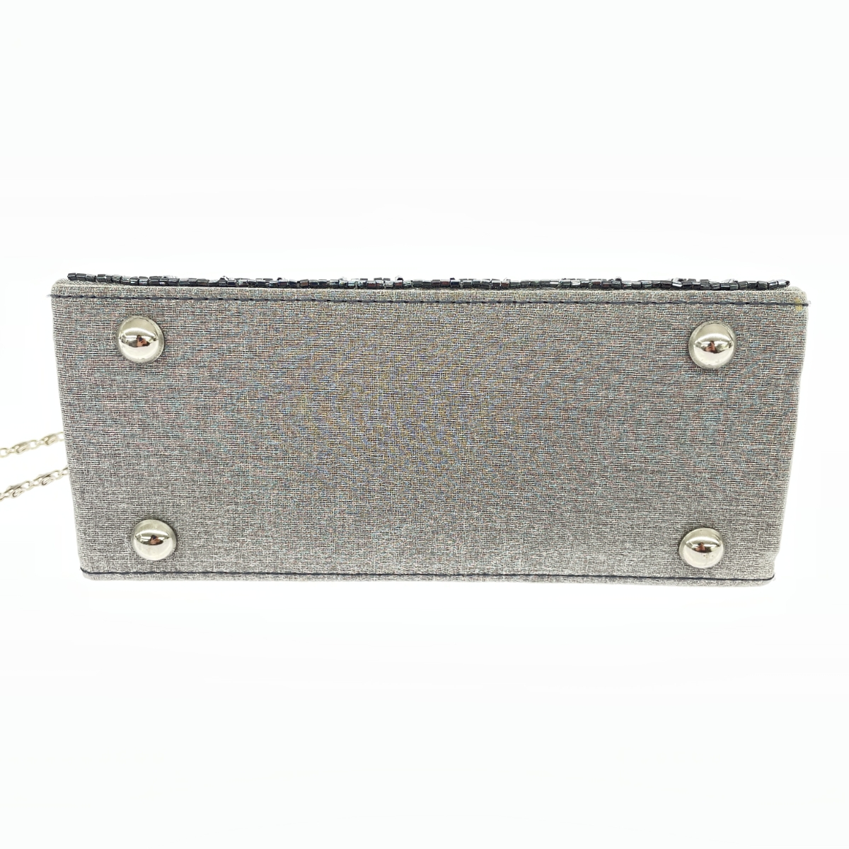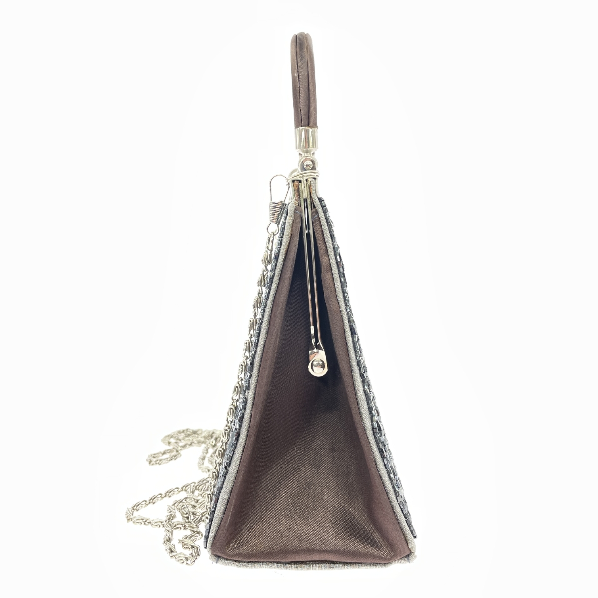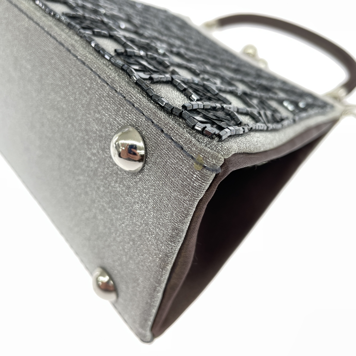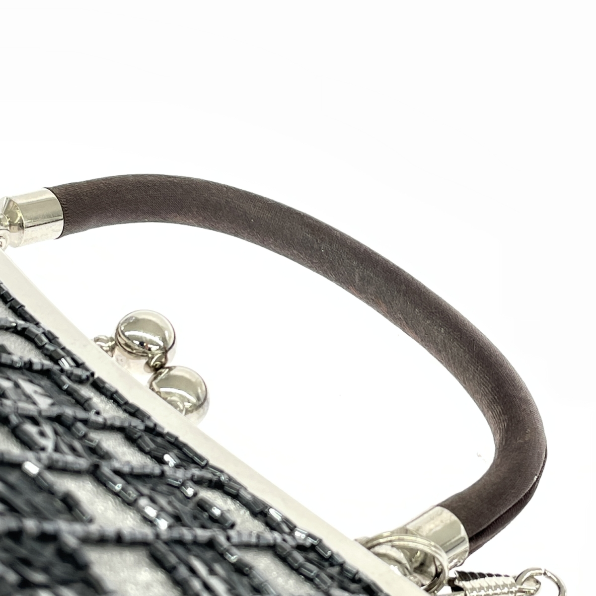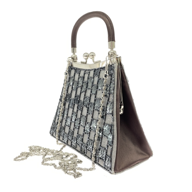 2WAYがま口ハンドバッグ チェーンショルダー/スパンコール/サテン/シルバーカラー |