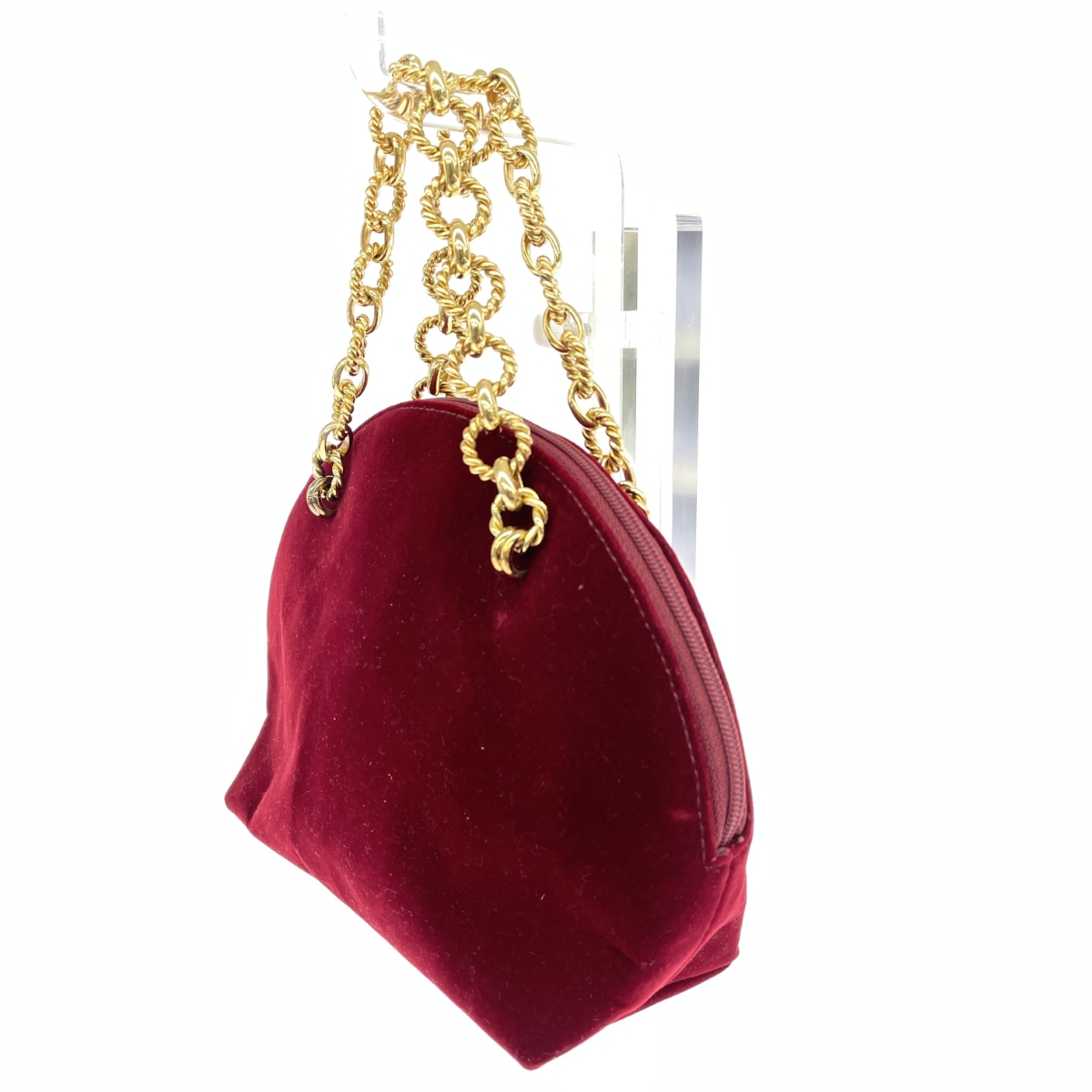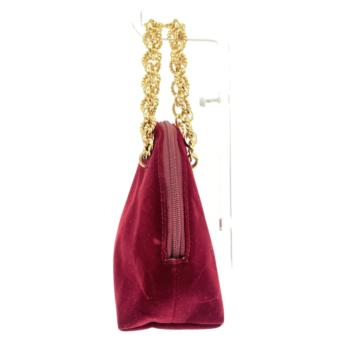 ミニハンドバッグ チェーンハンドル/タッセル/ベロア/ボルドー |