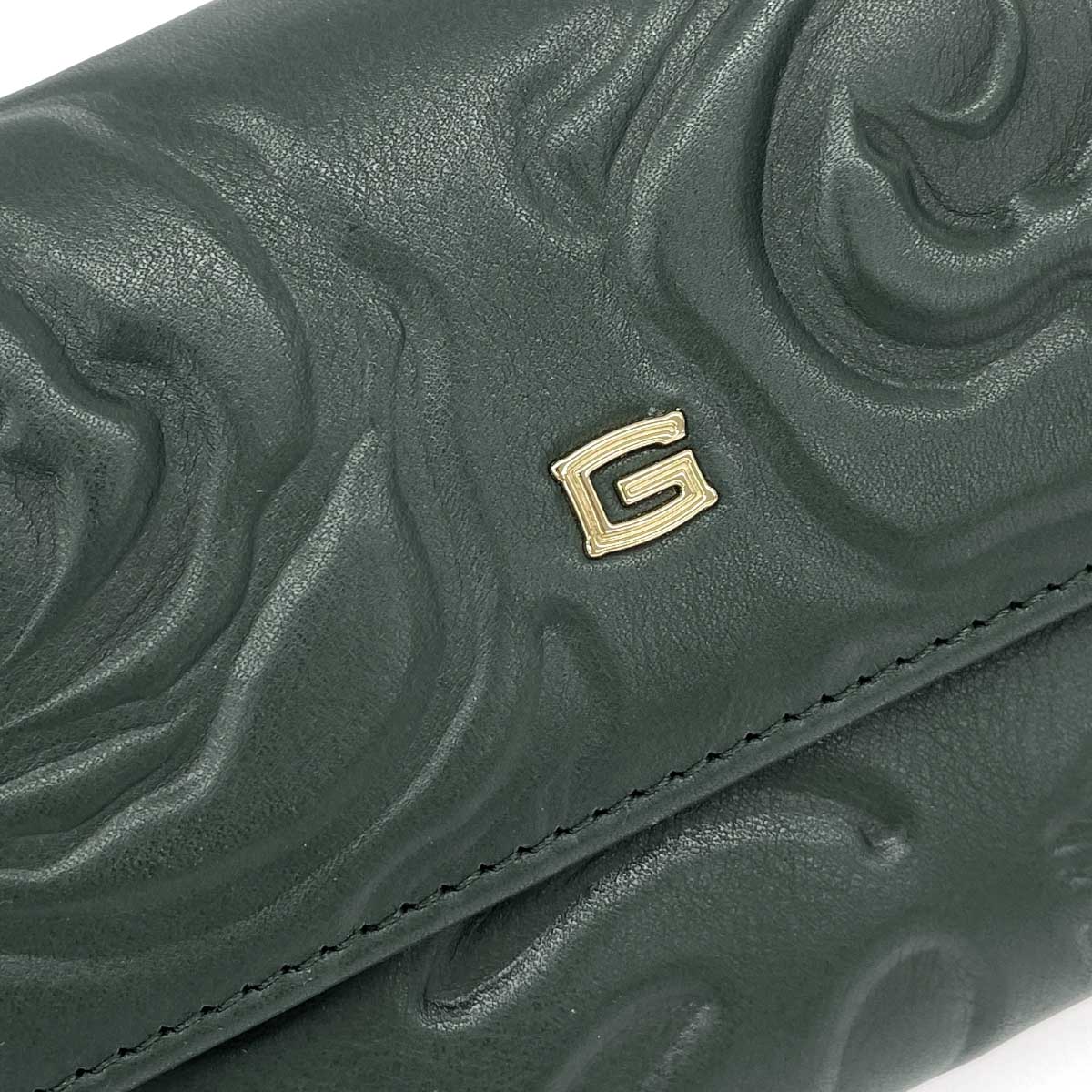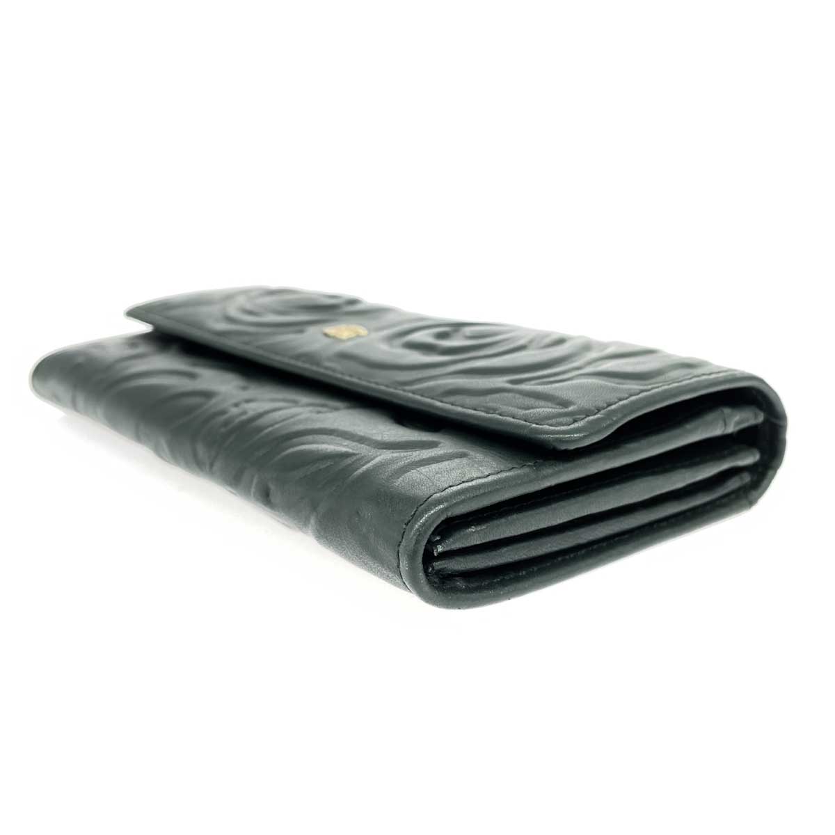 二つ折り長財布 花/型押し/レザー |