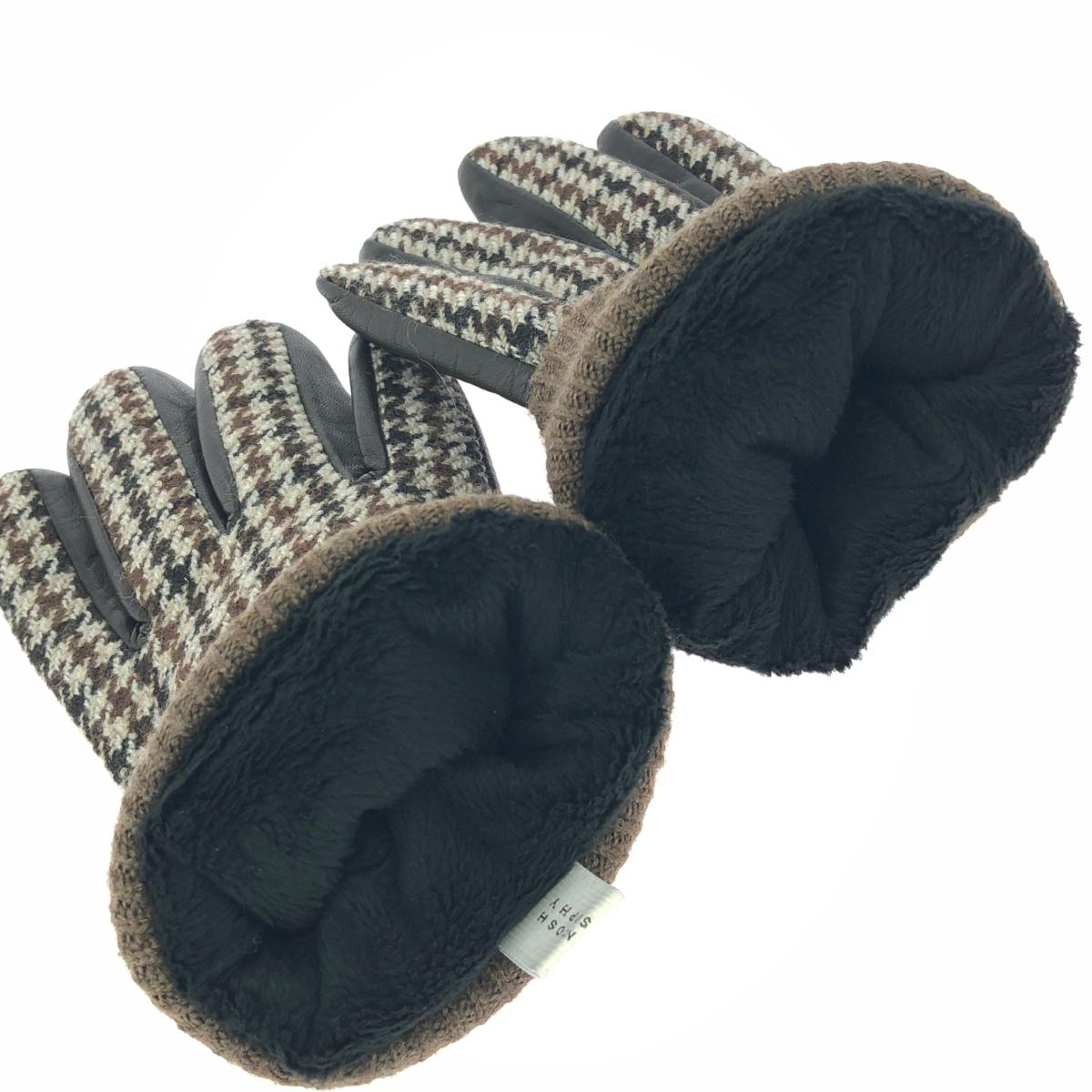 手袋 千鳥格子/レザー×ツイード |