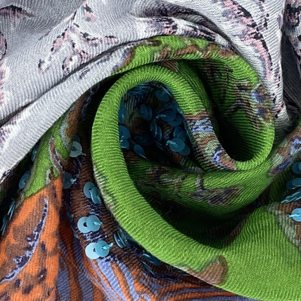 ストール コットンシルク/スパンコールビーズ刺繍 |