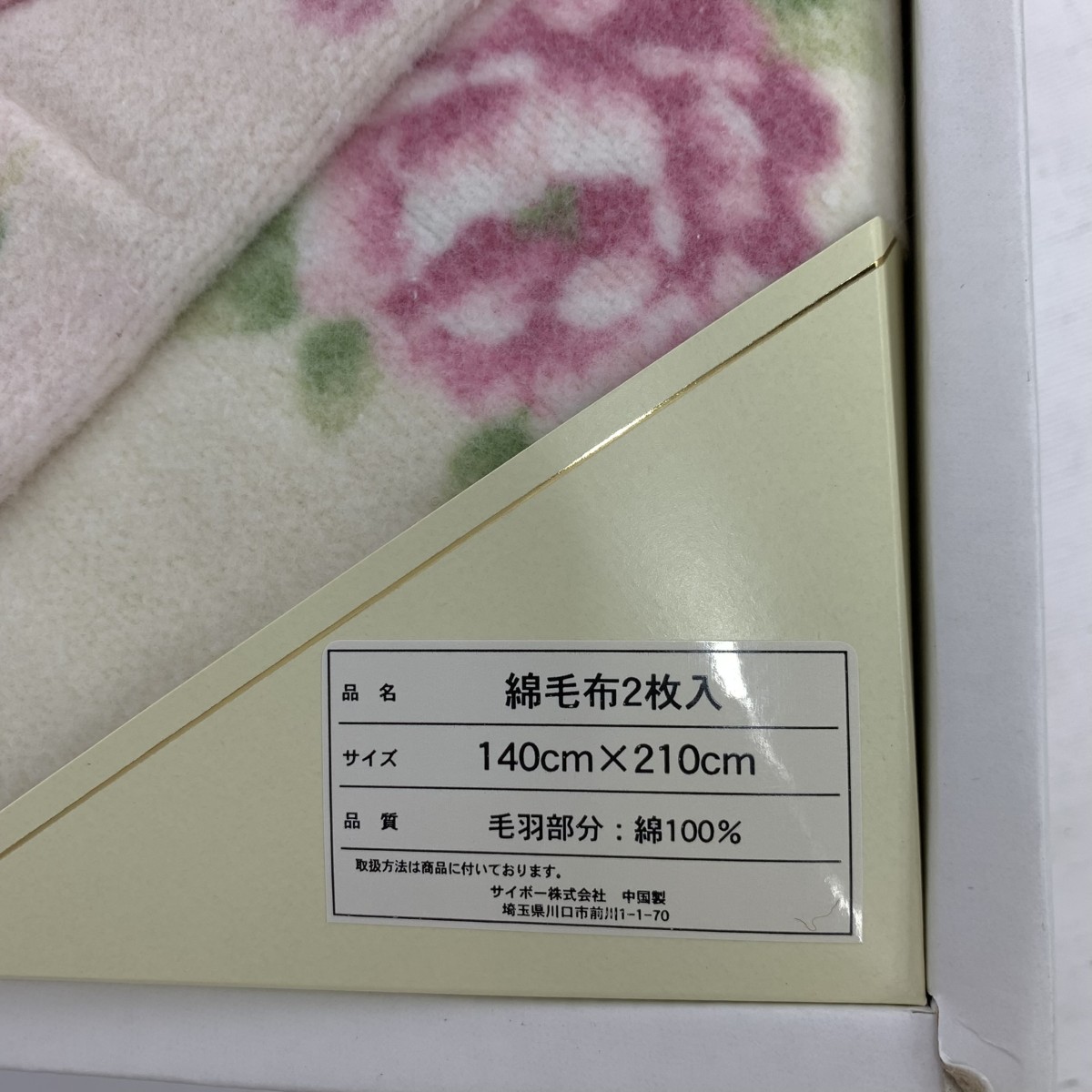 綿毛布2枚入 花柄 コットン/ピンク&ブルー |