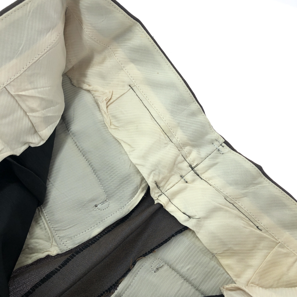 スラックスパンツ DORMEUIL ※素材は画像の素材タグをご確認ください。 画像にない場合は素材タグが無く素材不明となります。 |