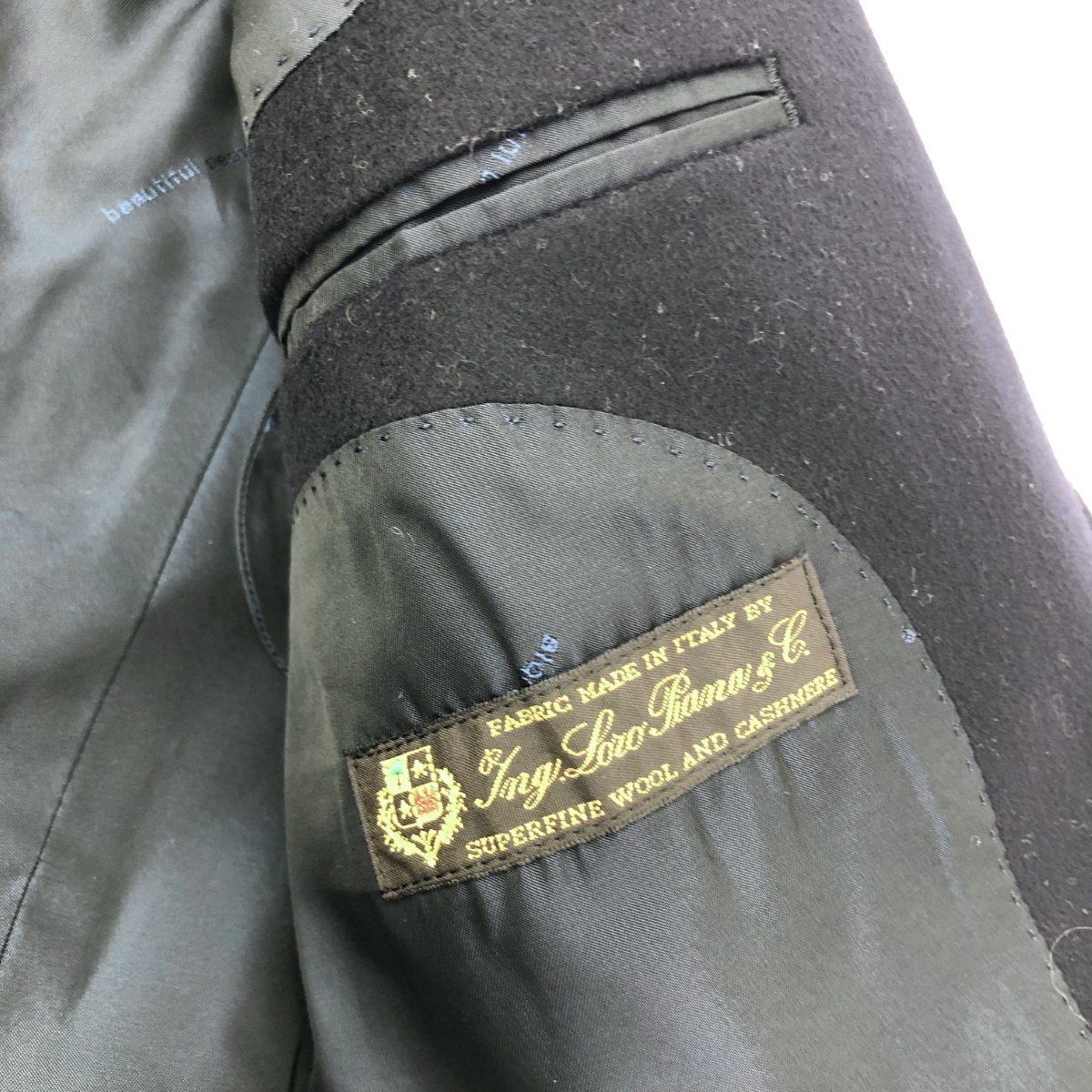 チェスターコート ロロピアーナ生地 ※素材は画像の素材タグをご確認ください。 画像にない場合は素材タグが無く素材不明となります。 |