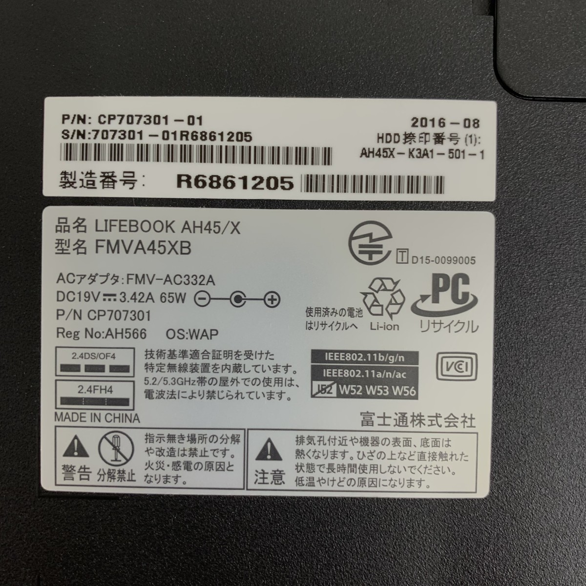 ノートPC FMVA45XB/DDR4 4000MB FMV LIFEBOOK/i3-6100U |