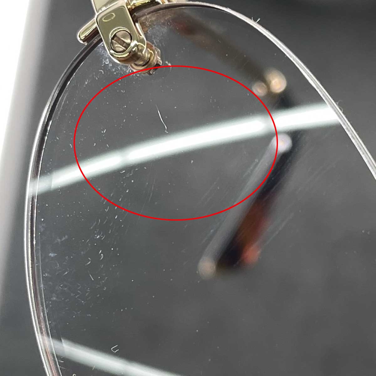 【フレーム】-- 【レンズ】度なし 小傷有り ※スレ傷や汚れがある場合はその一部分のみ撮影を行っております。 画像に写っていない箇所にも同じようなスレ傷や汚れがある場合がございます。 |