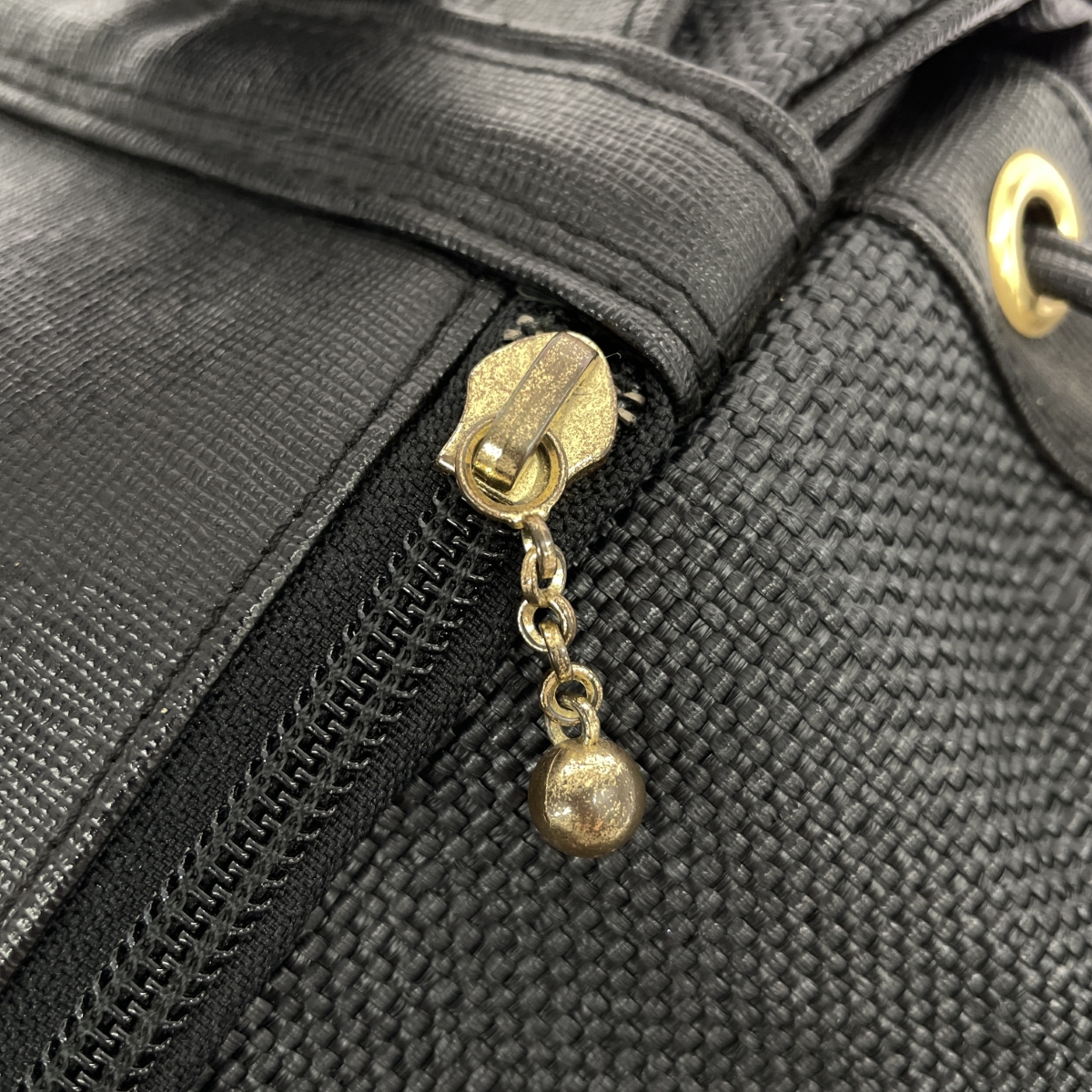巾着リュック ロゴ刺繍 メッシュ フェイクストロー |