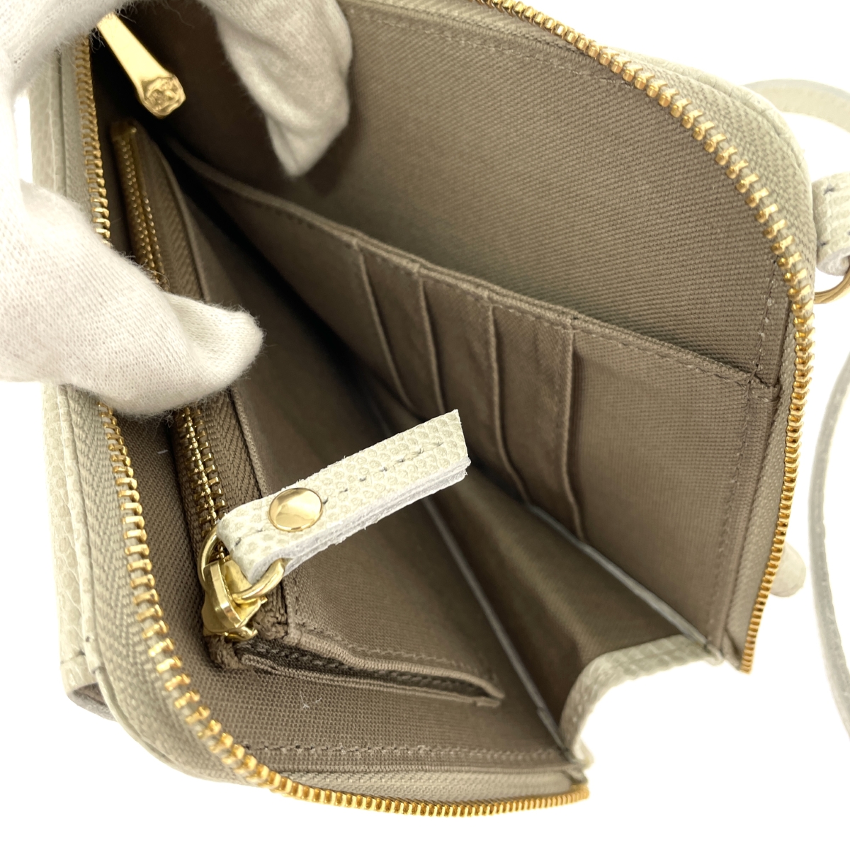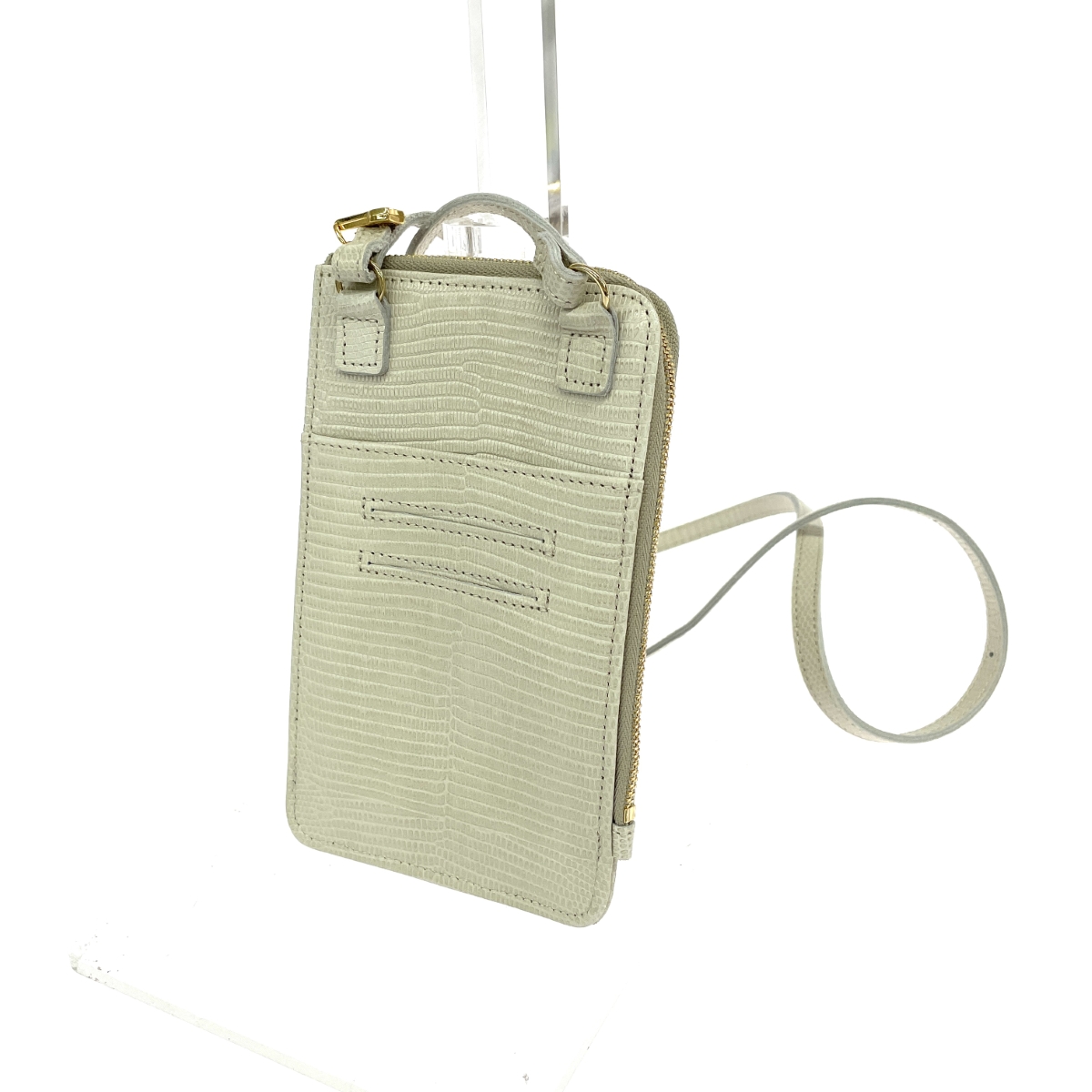 スマホポーチ ミニショルダーバッグ V-1289 リザード型押し レザー アイボリー |