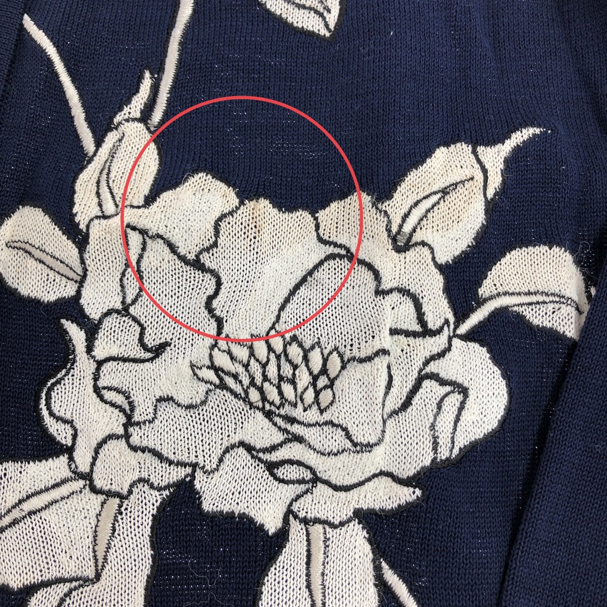 前身ごろシミ - ※スレ傷や汚れがある場合はその一部分のみ撮影を行っております。 画像に写っていない箇所にも同じようなスレ傷や汚れがある場合がございます。 |