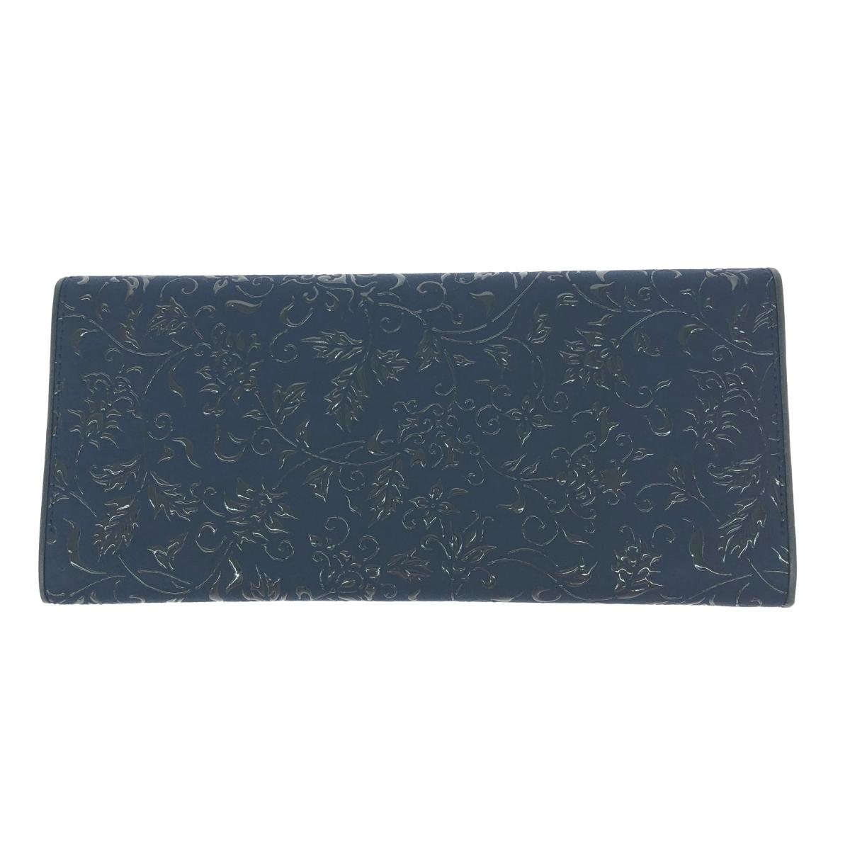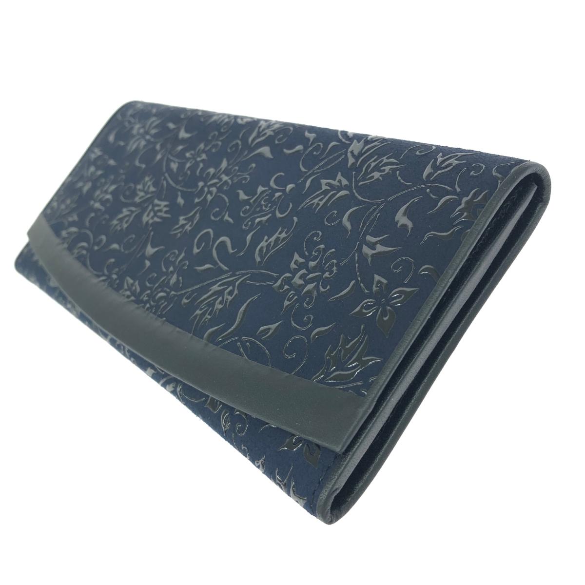 二つ折り長財布 花唐草//紺地鹿革黒漆 |