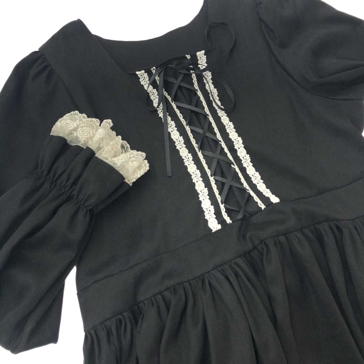 ロングワンピース Hirokotoku レースアップ/フリル/ティアード ※素材は画像の素材タグをご確認ください。 画像にない場合は素材タグが無く素材不明となります。 |
