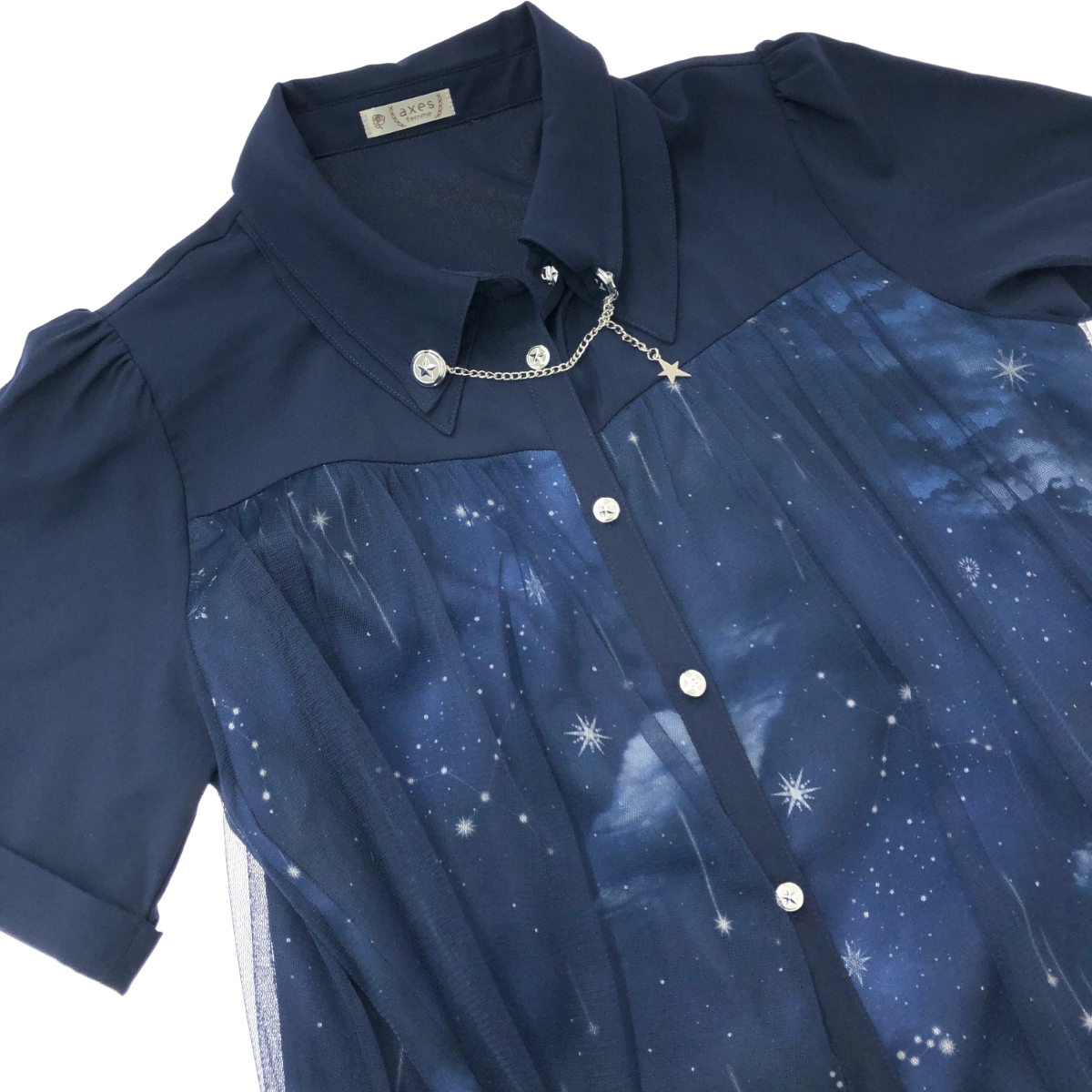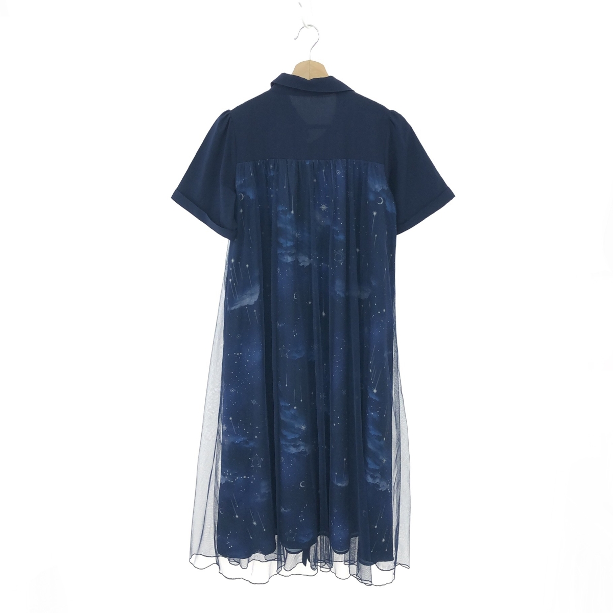 ステラ―トプリント ワンピース 星空/スター/ロング/半袖 ※素材は画像の素材タグをご確認ください。 画像にない場合は素材タグが無く素材不明となります。 |